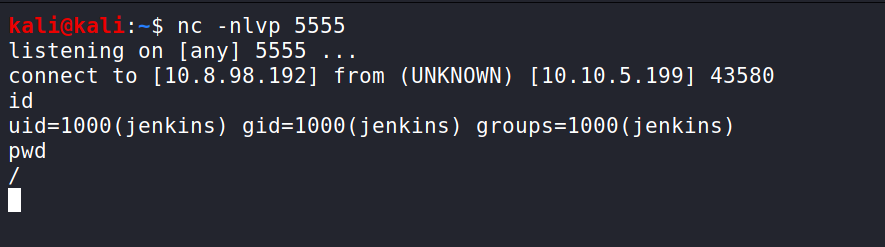 We can get a reverse shell from Jenkins as we can run groovy scripts by navigating to: Manage Jenkins ⇒ Tools and Actions ⇒ Script Console ⇒ Groovy Script. We can easily found a groovy script to get a reverse shell.The one which I used is:// Linux